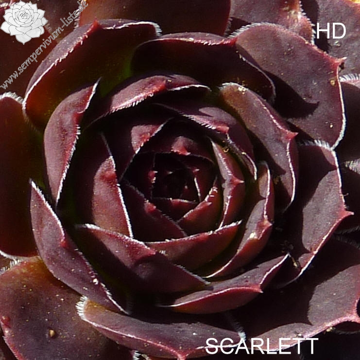 Rosetten bis 5 cm, Blätter breit keilförmig, kurz bespitzt, bordeauxviolett - rotviolett, Blattränder bewimpert