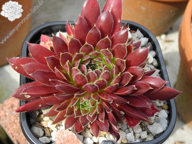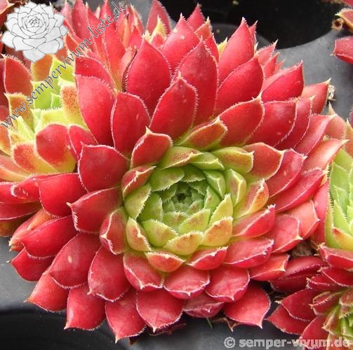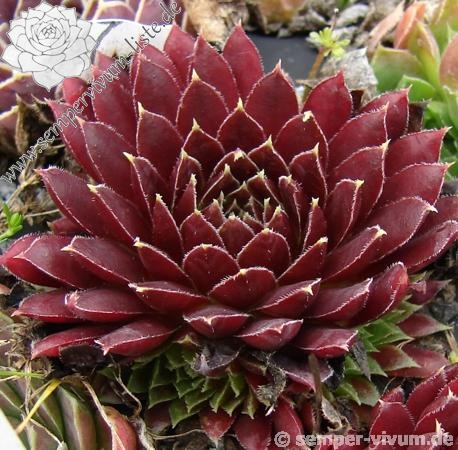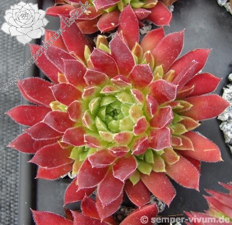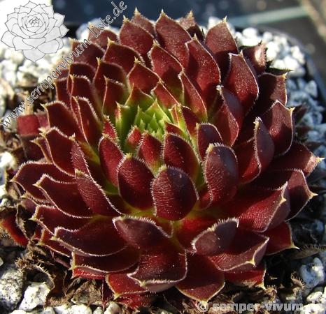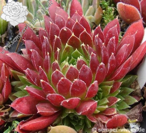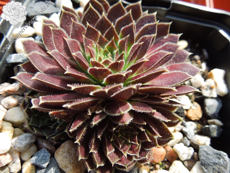Die Hybride 'Senne' gehört zu den kleinrosettigeren Auslesen in der S. x nixonii Gruppe. Die Blattränder sind stark cremefarben bewimpert. Gerade zur himbeerroten Färbung im Spätherbst führt das zu einem reizvollem Anblick. Einer unserer neuen Lieblinge der S. x nixonii Hybriden!