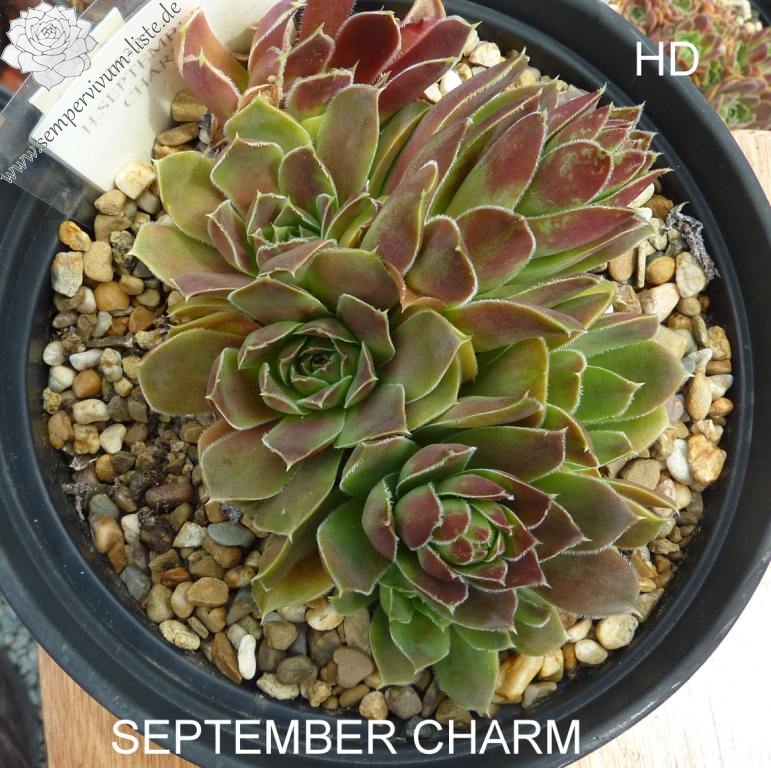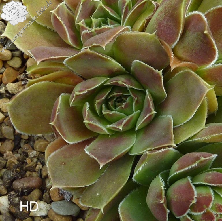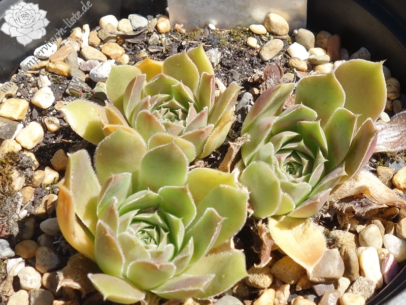 große Rosetten, Blätter spatelig, lang bespitzt, trübes Oliv, rotbraun überhaucht