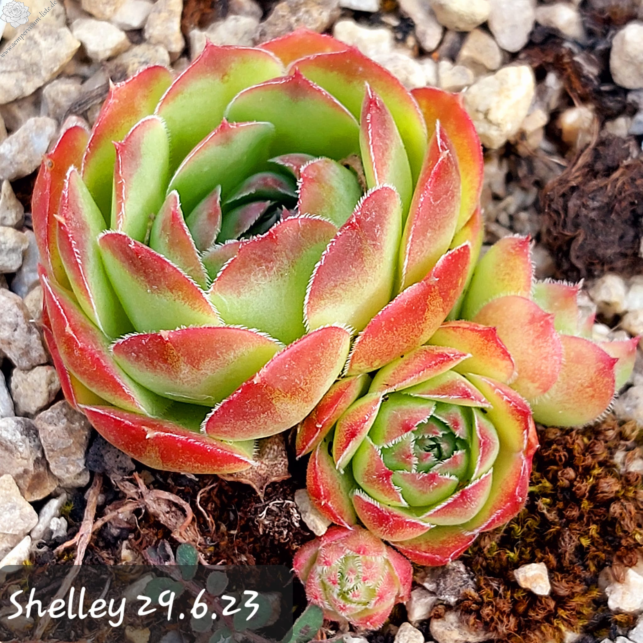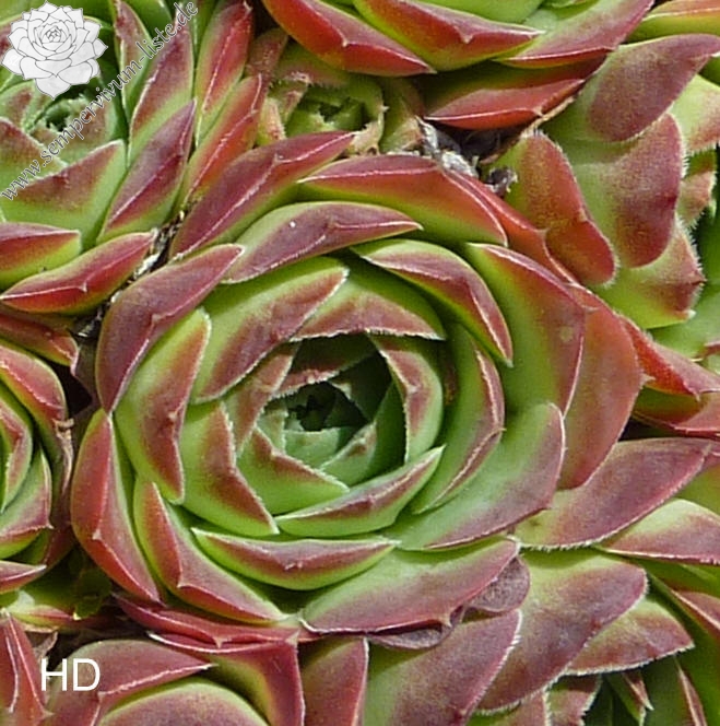 kleine Rosetten, Blätter eiförmig, kurz bespitzt, Basis hellgrün, Blattspitzen rot - braun