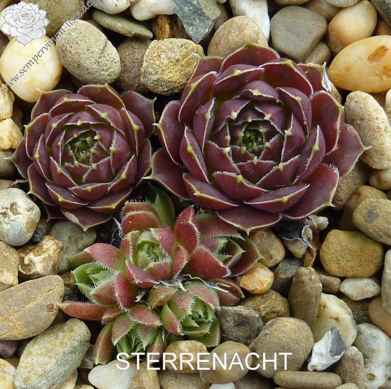 Rosetten bis 5 cm, Blätter rundlich, kurz bespitzt, bordeauxviolett, Blättränder gelb, bewimpert
