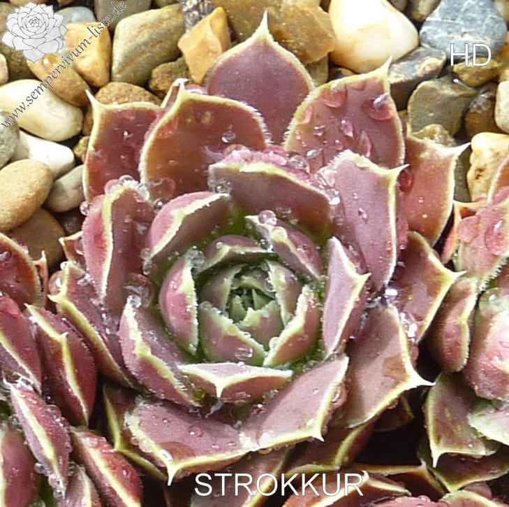 Rosetten bis 6 cm, Blätter oval, lang bespitzt, altrosa, Blattränder hell