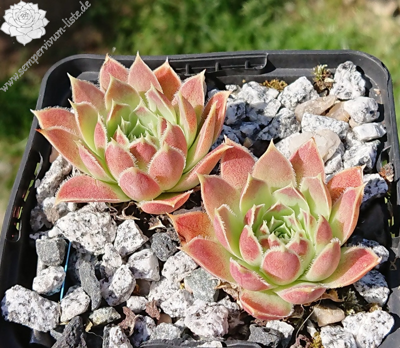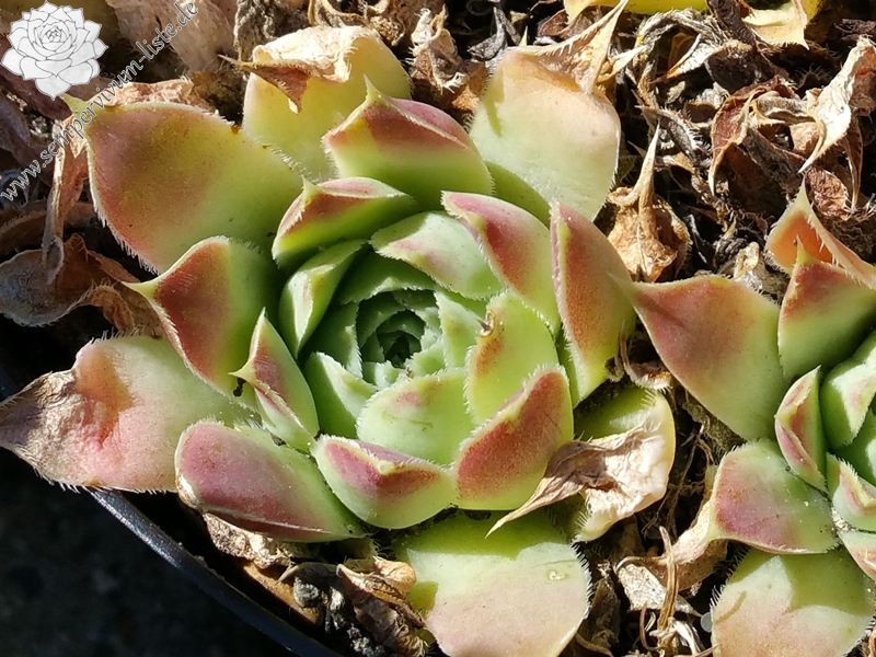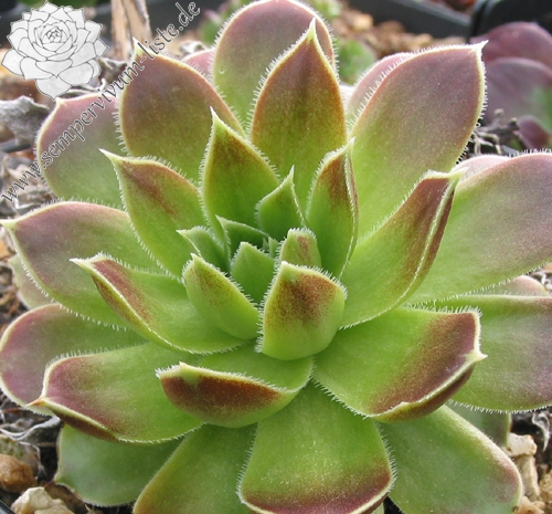 Rosetten 5 cm / Mischtöne hellgrün - altrosa, Blattränder hell bewimpert