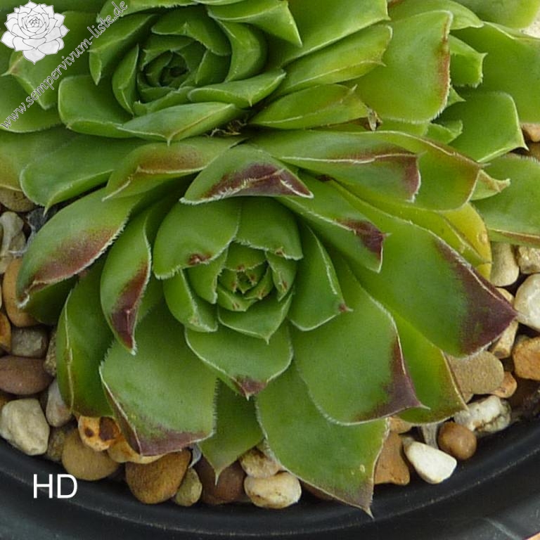 große Rosetten, Blätter spatelig, lang bespitzt, dunkles Grün, bräunliche Spitzen