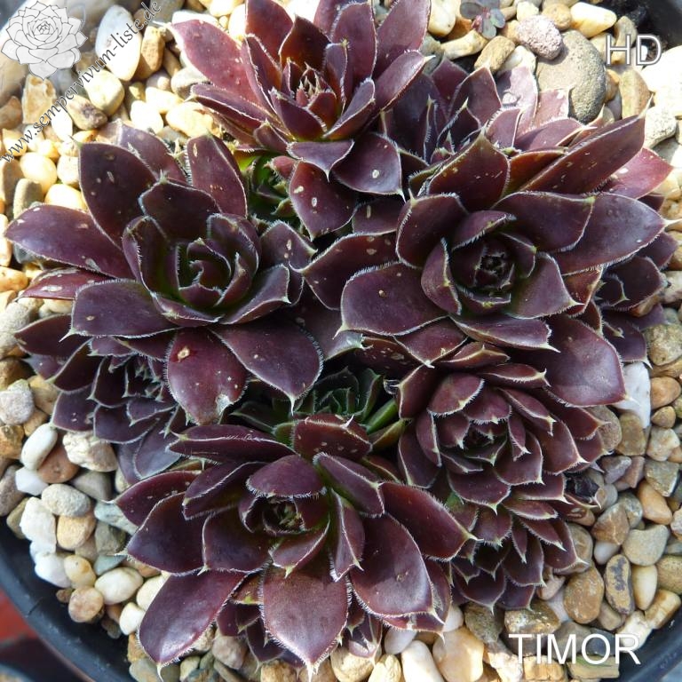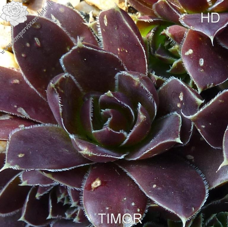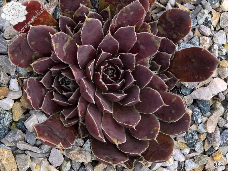 Rosetten bis 8 cm, Blätter lanzettlich, lang bespitzt, bordeauxviolett, Blattränder bewimpert