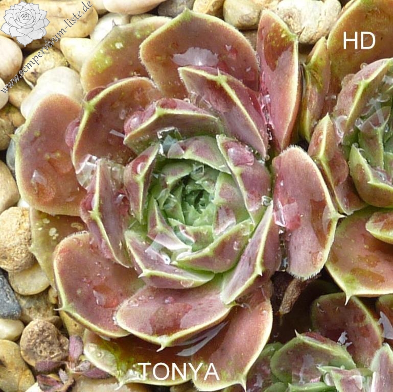 Rosetten bis 5 cm, Blätter breit keilförmig, kurz bespitzt, beigerot - lachsrot, Herz hellgrün, Blattränder gelblich