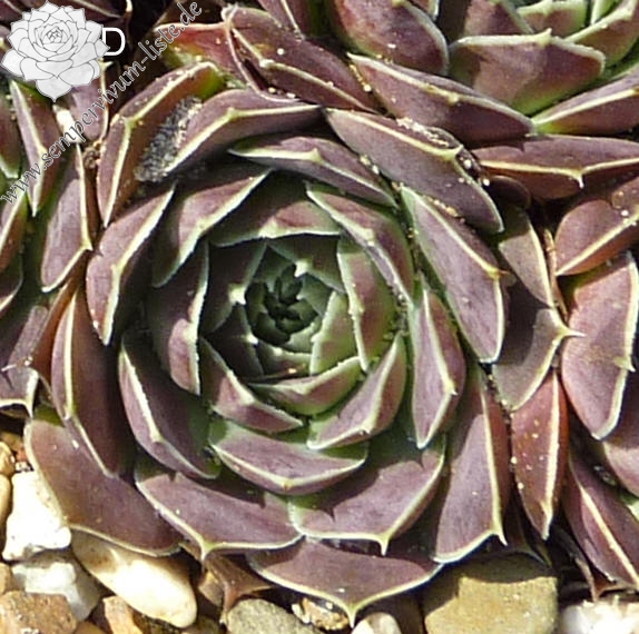 kleine Rosetten, Blätter keilförmig, kurz bespitzt, oliv - blasses Lila, Blattränder hell