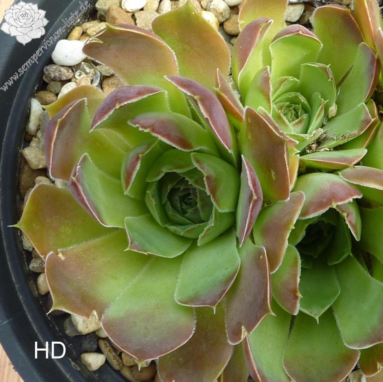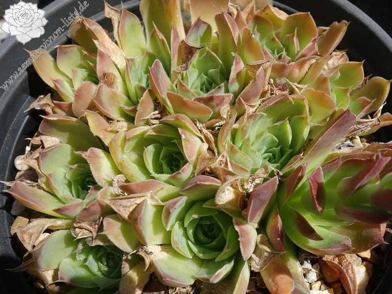 große Rosetten, Blätter spatelig, Herz hellgrün, Spitzen rosa - braun