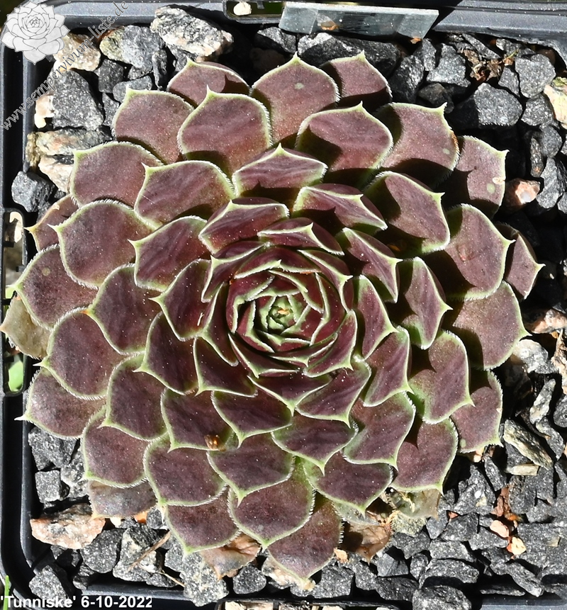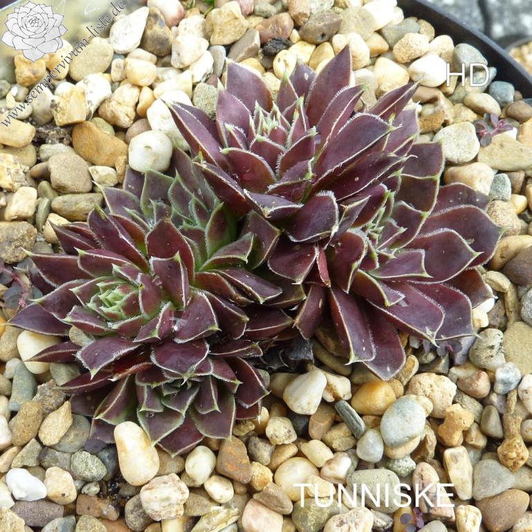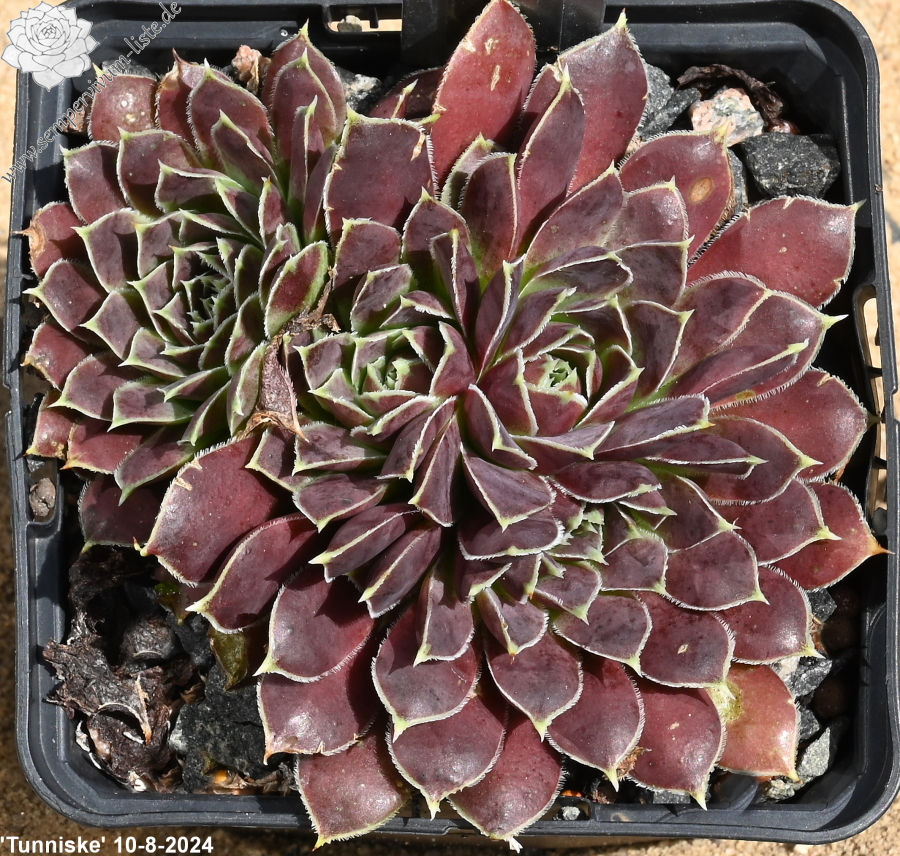 Rosetten bis 5 cm, Blätter lanzettlich, lang bespitzt, rotlila - signalviolett, Basis weissgrün, Blattränder grünlich, bewimpert