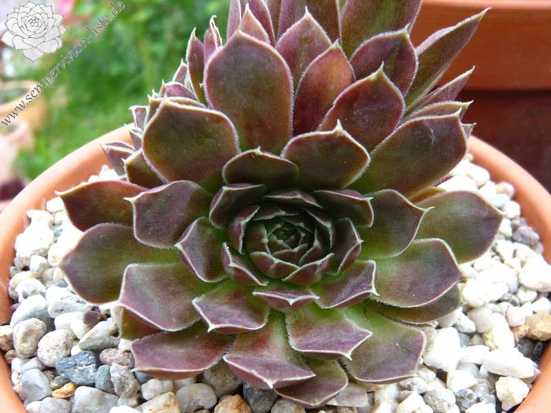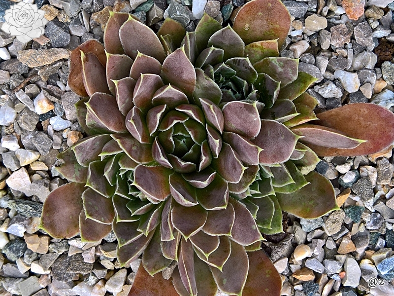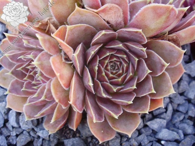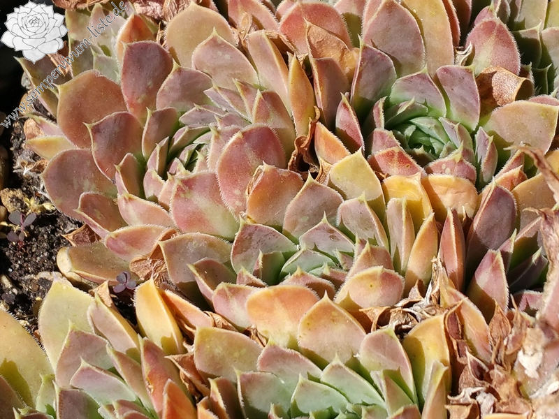 Ein britischer Kultivar von David Ford: größere Rosetten spielen ganzjährig mit braunrosa und violetten Farben.