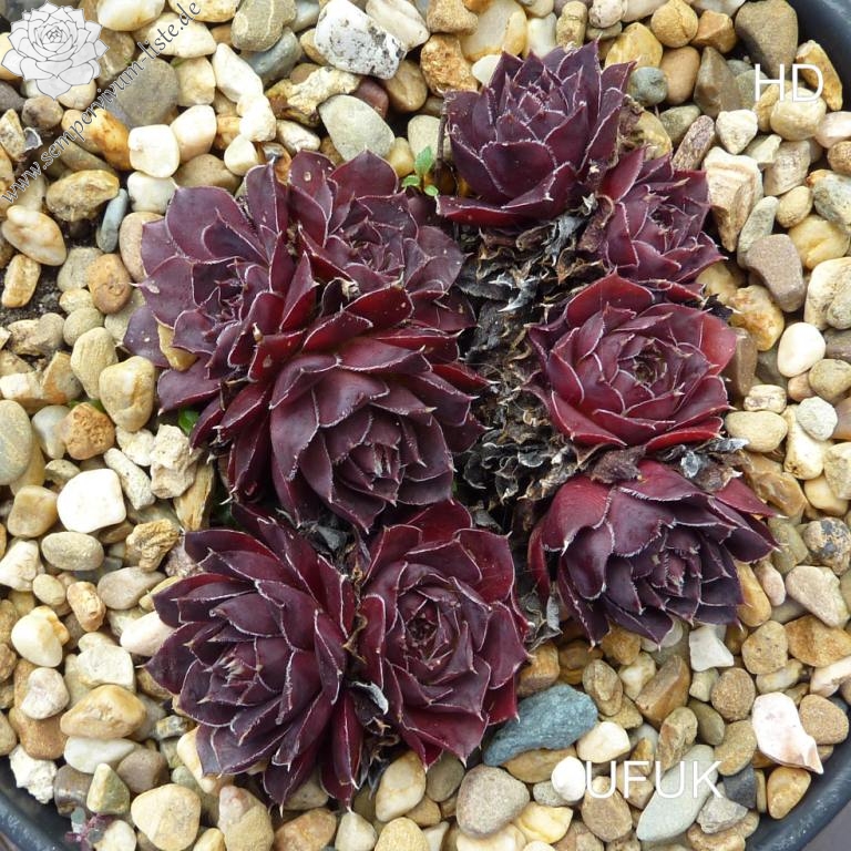 Rosetten bis 5 cm, Blätter oval. lang bespitzt, signalviolett - rotlila, Blattränder bewimpert