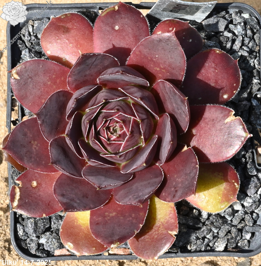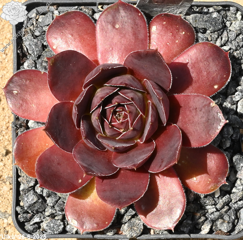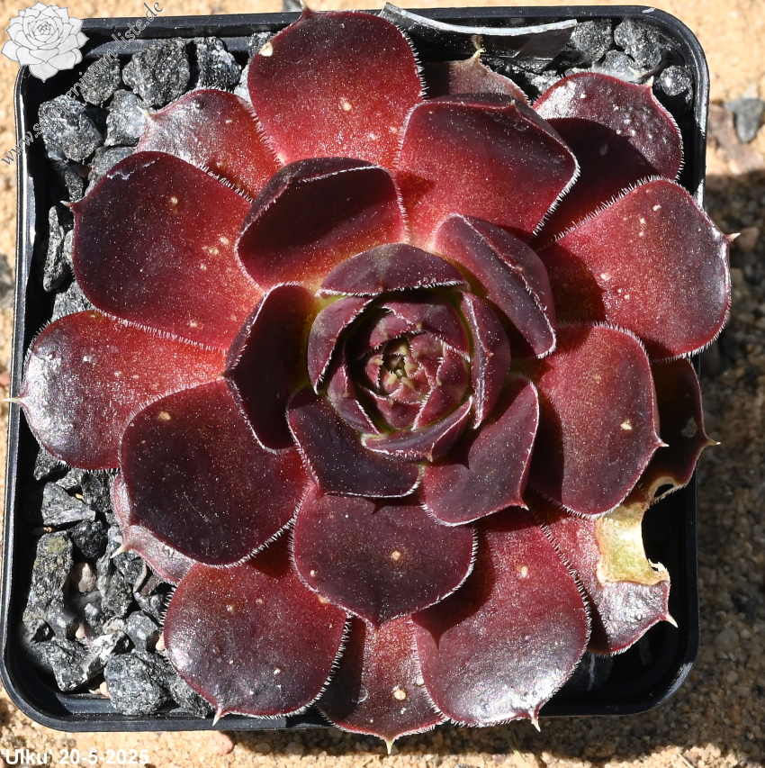 Rosetten bis 5 cm, Blätter breit spatelig, kurz bespitzt, erikaviolett - verkehrspurpur, Blattränder bewimpert