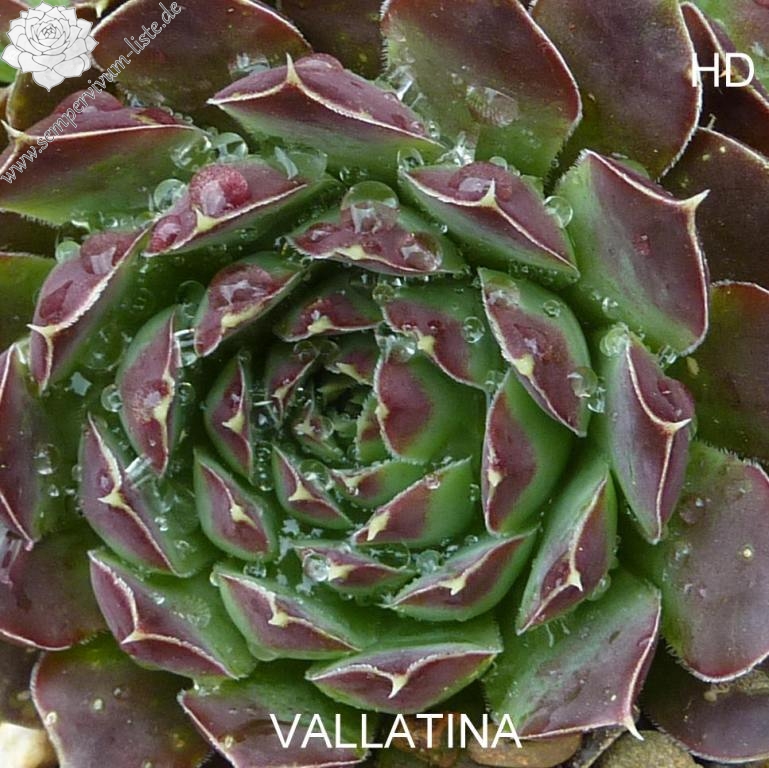 Rosetten bis 8 cm, Blätter breit spatelig, kurz bespitzt, maigrün, obere Blattdrittel rotlila
