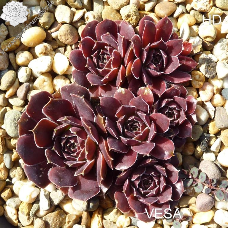 Rosetten bis 5 cm, Blätter breit keilförmig, kurz bespitzt, rotviolett - erikaviolett, Blattränder bewimpert