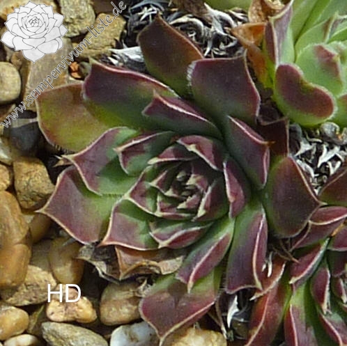 kleine Rosetten, spatelige Blätter, lang bespitzt, Herz dunkles Grün, Rest blasses Lila - Braun