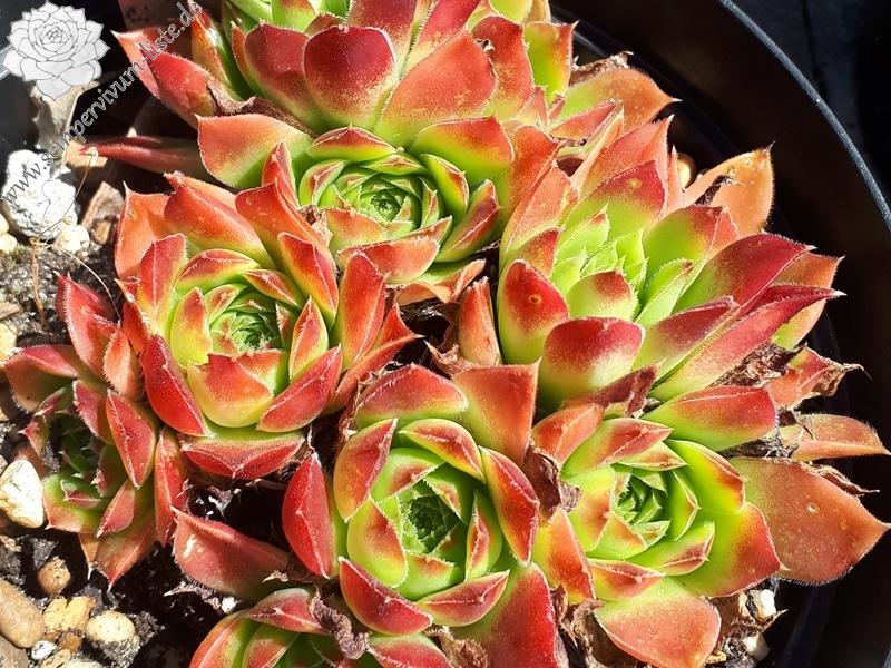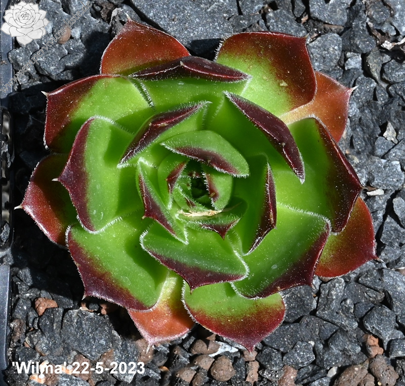 kleine Rosetten, Blätter eiförmig, kurz bespitzt, Herz lindgrün, Spitzen helles Rot, bewimpert