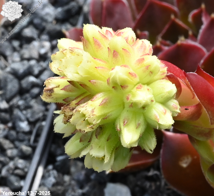 Rosetten bis 8 cm, Blätter oval, lang bespitzt, braunrot