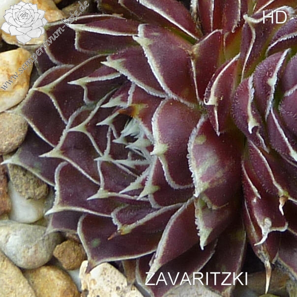 Rosetten bis 5 cm, Blätter oval, lang bespitzt, bordeauxviolett, Blattränder hell, bewimpert