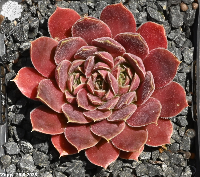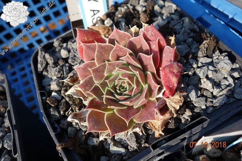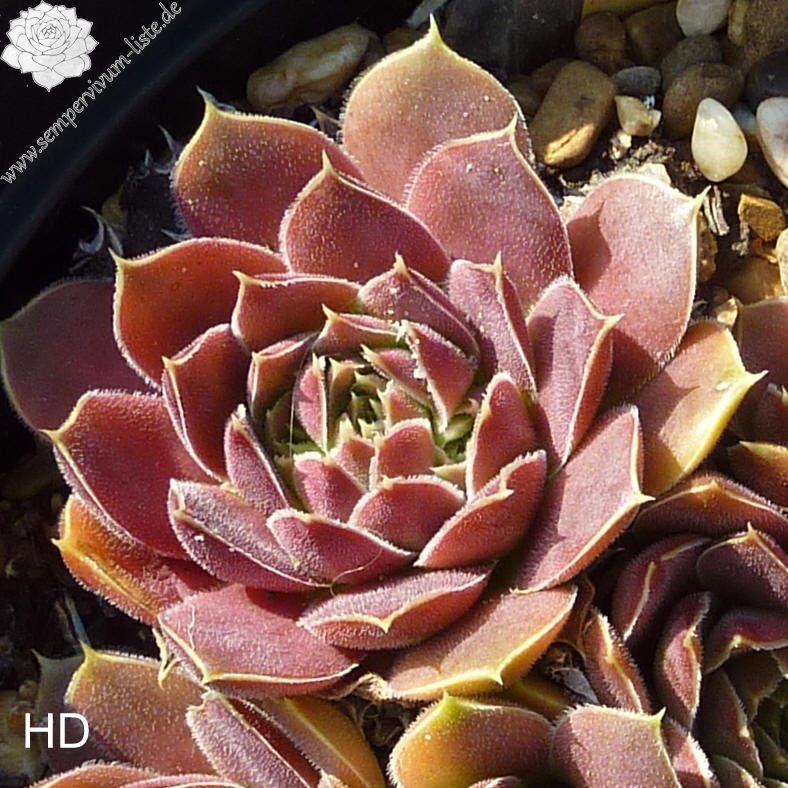 Rosetten 6 cm, Blätter rundlich, kurz bespitzt, samtige Substanz, rosa - rot - ocker. Ränder bewimpert