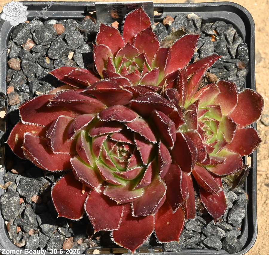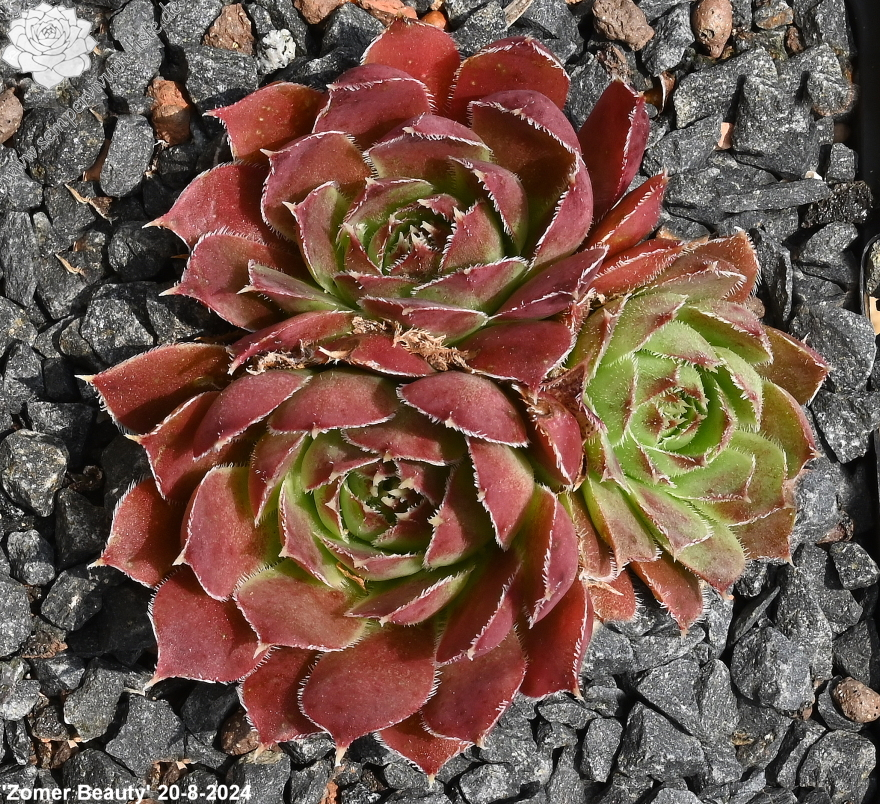 Dieser Donarbart ist eine wirkliche Schönheit und das nicht nur im Sommer. Schon im Frühling prunkt er mit hellroten Blättern mit kontrastreichen Rand, der stark bewimpert ist. Im Juni ist auch das Laub mit auffallenden Härchen versehen und die Färbung wechselt dann zu Rosa- bis Pfirsichfarbener Note. 'Zomer Beauty' formt größere Rosetten, die sich im Sommer weit öffnen. Eine Besonderheit für jede Sammlung!