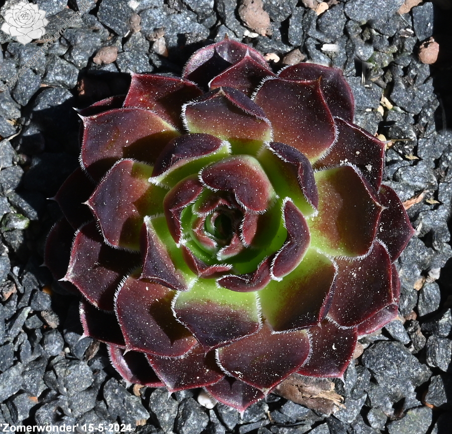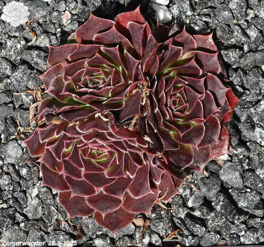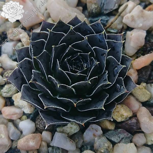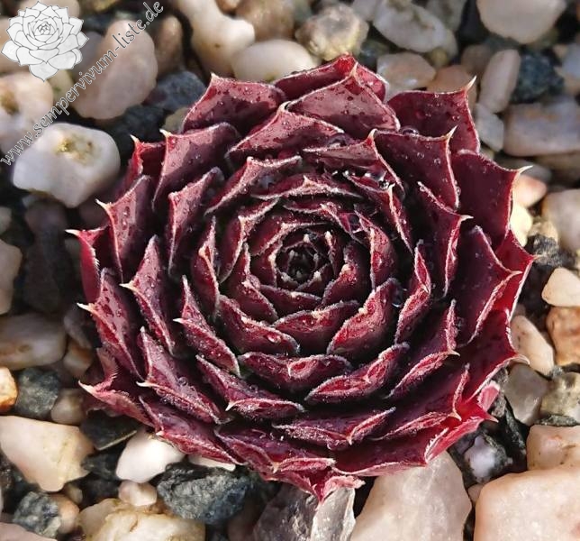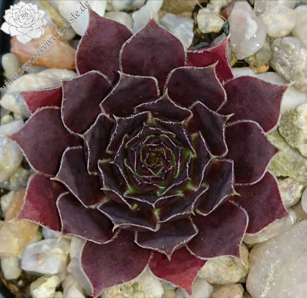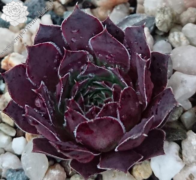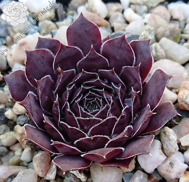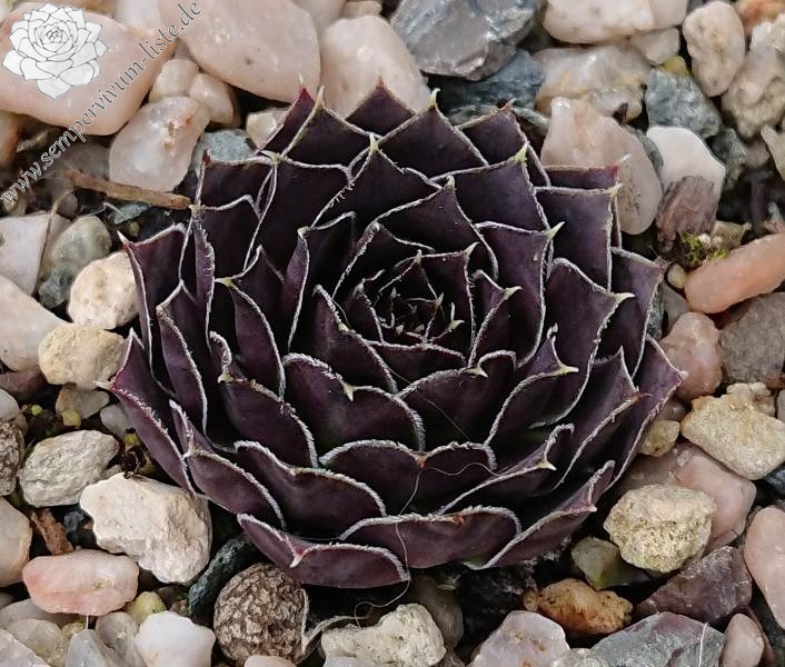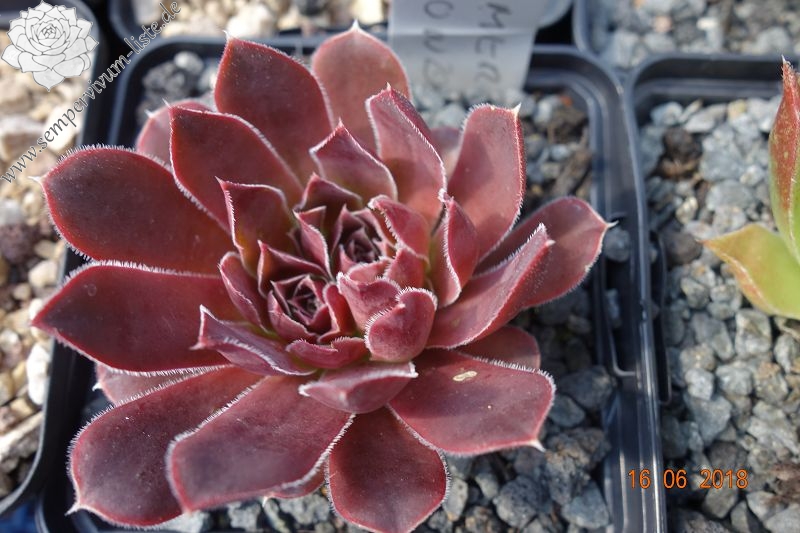 Rosetten bis 5 cm, Blätter lanzettlich, lang bespitzt, rotlila, Blattränder bewimpert