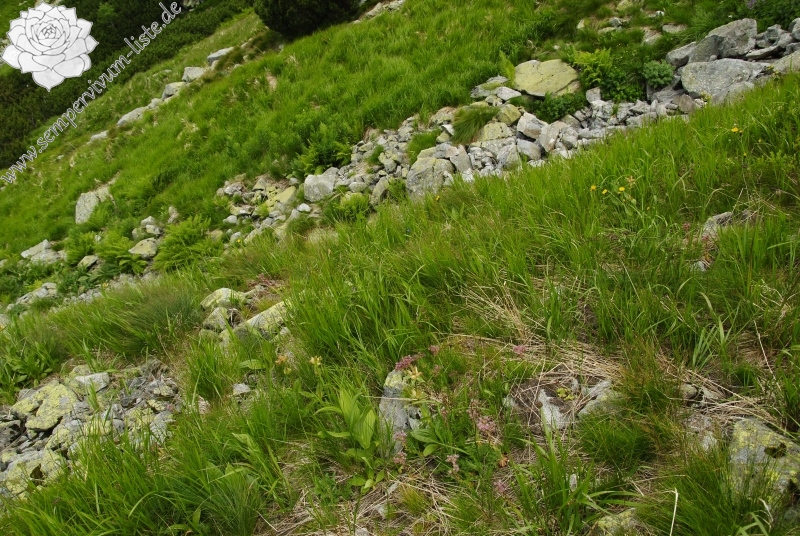 In dem oberen Teil des Tales habe ich einen Naturstandort von Sempervivum montanum ssp. carpathicum gefunden, der Naturstandort liegt in der Höhe von 1685 Meter über dem Meerspiegel, das Gestein wird durch Granit gebildet.