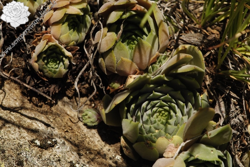 An dem Naturstandort habe ich eine große Menge der Rosetten beobachtet. Die Rosetten wachsen da vor allem in der Nähe der kleinen Felsen und in der Nähe der großen Steine, weiter in der Felsspalten und teilweise auch im Gras nah der Steine. Am Naturstandort habe ich Rosetten aller Größen beobachtet, alle Rosetten waren in der Zeit meines Besuches in den guten Zustand. Weil es ziemlich lange trocken war (Sommer 2015) und lange hat es nicht geregnet, waren ziemlich viele Rosetten teilweise geschlossen. Obwohl die Rosetten teilweise geschlossen waren, war es möglich unterschiedliche Farben der Rosettenblätter gut zu beobachten. Die Rosettenblätter waren lila, dunkel rot, blau-grün oder auch lila-braun gefärbt. Die Rosettenblätter waren an beiden Flächen dicht kurz drüsig behaart.