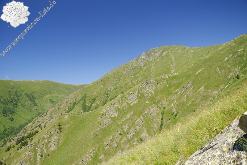 An den Abhängen dieses Nebengebirgskammes führt einen touristischen Weg, dieser touristischer Weg steigt heftig und fängt direkt bei dem Rila Kloster an. Die Abhänge dieses Nebengebirgskammes sind sehr steil und oft felsig. Nicht weit von der Grenze des Waldes gibt es neben dem touristischen Weg kleine Felsen und Steine, da habe ich einen Naturstandort von Sempervivum erythraeum gefunden. Dieser Naturstandort liegt in der Höhe von 1700 Meter und das Gestein wird Granit gebildet.