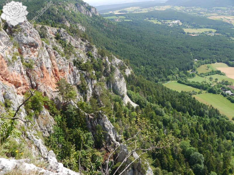 Die Hohe Wand ist ein bewaldeter Plateauberg im Übergangsbereich von der alpinen Gebirgs- zur pannonisch beeinflussten Felssteppenflora. Die bis zu 230 Meter hohen Kalkstein-Felsklippen fallen nach Südosten hin exponiert zur sogenannten Neuen Welt hin ab (Quelle: Wikipedia).