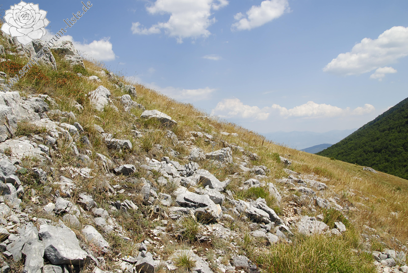 Durch den Sattel fürht eine Straße, die in einem ziemlich guten Zustand ist und die auch ziemlich häufig benutzt wird. Darum sind die Berge von Galičica gut und leicht erreichbar. Gleich über dem Sattel habe ich einen Naturstandort von Sempervivum ciliosum gefunden. Der Naturstandort liegt an dem südlich orientierten Abhang gleich über dem Sattel.