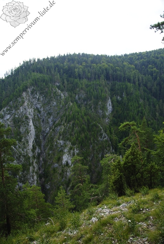 Das Tal Kyseľ liegt in dem nördlichen Teil des Nationalparks, südlich von dem Ort Kláštorisko. Das Tal ist sehr tief und oben an den Kanten des Tales habe ich einen Standort von Jovibarba hirta var. hirta gefunden. Der Naturstandort befindet sich gleich neben dem blau markierten touristischen Weg zwischen Kláštorisko und zwischen der Weggabelung in dem Tal Kyseľ.