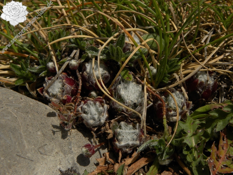 in der Kultur bleiben die Rosetten auch so klein. Die Rosetten sind aber mehr geöffnet und das Spinngewebe ist dicht nur in der Mitte der Rosetten. Die Farbe der Rosettenblätter bleibt auch.