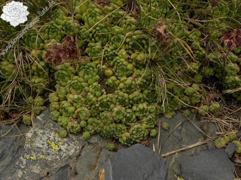 Der Standort liegt in der Höhe von 2430 Meter über dem Meerspiegel. Das Gestein wird Schiefer gebildet. Die Rosetten habe ich in den Felsspalten, unter der Steine, an den Steinen und am Rande der Steine gefunden.