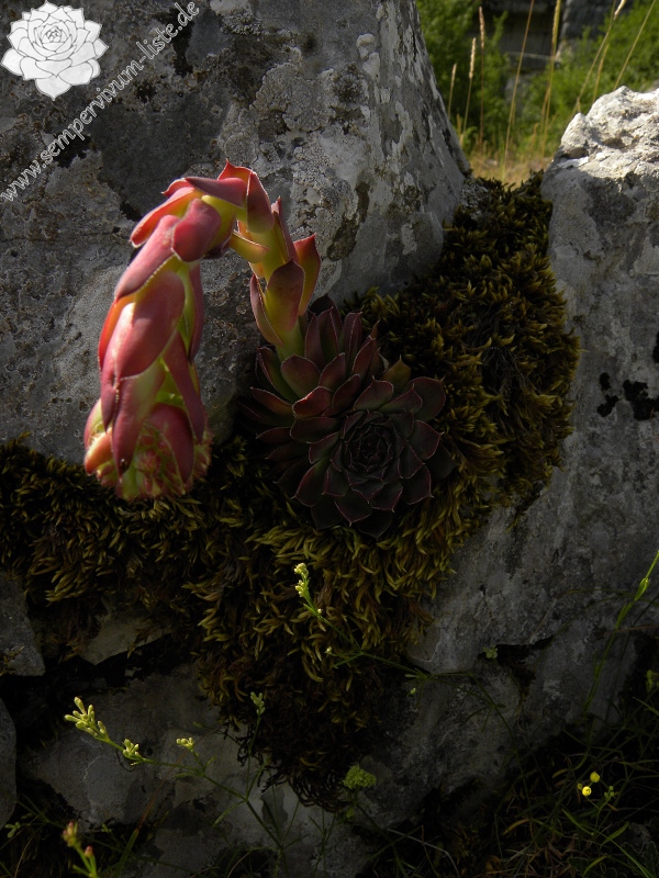 ich glaube, dass es keinen Zufall ist. Die Rosetten, die in den Felsspalten oder zwischen den Steinen wachsen, haben sicher weniger Wasser als die anderen. Der Boden ist auch magerer da.