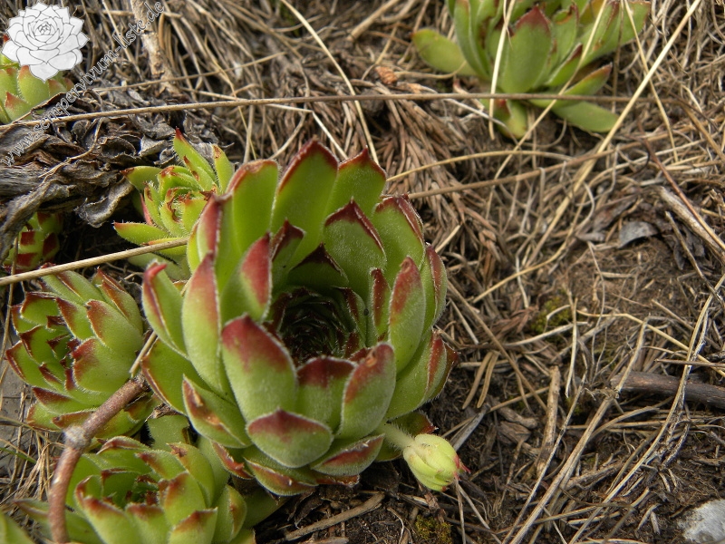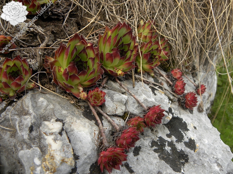Die Rosetten wachsen an den kleinen Felsen, in den Felsspalten, unter der Steine oder in der Nähe der Steine. Viele Rosetten sind im Gras gewachsen. Es gibt eine riesengroße Menge der Rosetten an dem Standort.