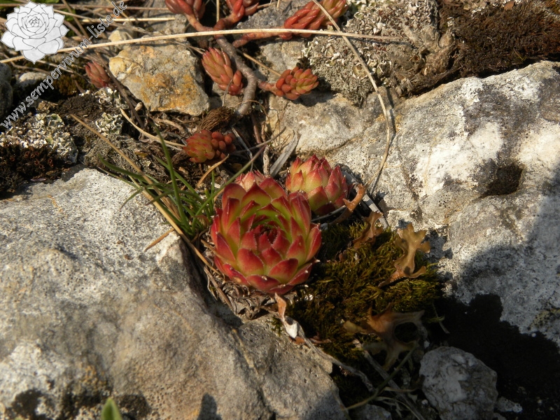 Die Rosetten von Sempervivum marmoreum var. marmoreum wachsen an den Felsen, in den Felsspalten. Viele Rosetten habe ich unter der Steine oder in der Nähe der Steine und Felsen gefunden. Die Rosetten, die im Schatten wachsen, waren vor allem grün gefärbt. Andere Rosetten haben die rotgefärbten Spitzen der Rosettenblätter, die ältesten Rosettenblätter waren oft rot gefärbt.