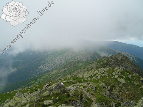 Nicht weit von dem Gipfel wächst Sempervivum montanum subsp. carpathicum. Wir haben eine große Population unter dem Gipfel gefunden. Die Population befindet sich in der Höhe von 2000 Meter über dem Meerspiegel. Der höchste Berg Ďumbier miss 2040 m.