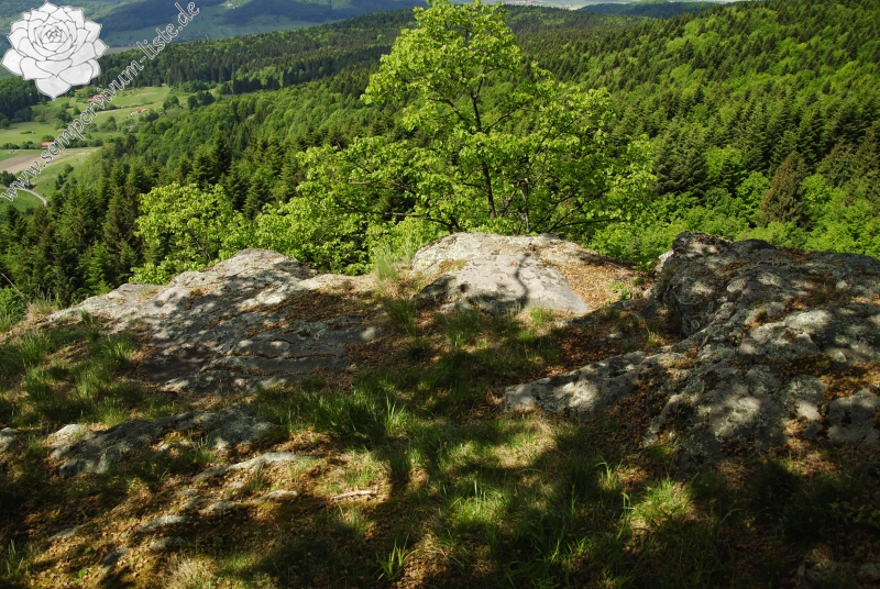 Die Rosetten von Jovibarba hirta var. preissiana habe ich in der Höhe von 905 Meter beobachtet, weitere Rosetten wachsen auch niedriger an den Felsen, ohne Kletterausrüstung sind unzugänglich. Das Gestein wird Andesit gebildet.