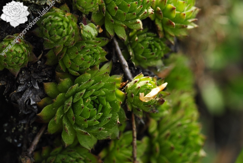 In der Zeit meines Besuches waren alle Rosetten in den guten Zustand, die Rosetten waren geöffnet, frisch grün gefärbt, die Rosettenblätter hatten dunkel rot oder lila rot gefärbte Spitzen der Rosettenblätter. Einige Rosetten haben neue Ausläufer gebildet, die meisten Ausläufer waren während voriges Jahren gebildet. Am Naturstandort habe ich keine blühende Rosette beobachtet, leider auch keine Rosette kurz vor der Blütezeit. Es war zwar früh für die Blüte, aber Sempervivum montanum ssp. heterophyllum blüht früher als Jovibarba hirta, die Rosetten von Sempervivum montanum ssp. heterophyllum blühen meistens am Ende Mai und am Anfag April in der Natur. Interessant war, dass die Rosetten von Sempervivum montanum ssp. heterophyllum of in der unmittelbare Nähe der Rosetten von Jovibarba hirta var. preissiana wachsen.