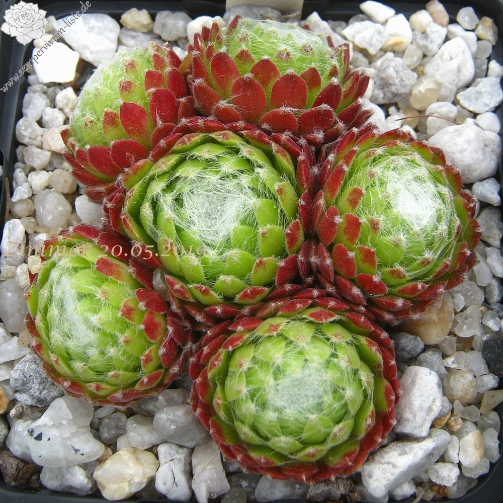 Mittlerweile gibt es unzählige S. arachnoideum Hybriden wovon viele immer noch Ihren eigenen Charakter besitzen. Unserer Meinung ist auch diese neuere Auslese aus Deutschland von den vielen weiteren bekannten Spinnwebhauswurzkultivaren zu unterscheiden. Sempervivum 'Almaros' bildet größere, grasgrüne Rosetten mit dichter Bespinnung.