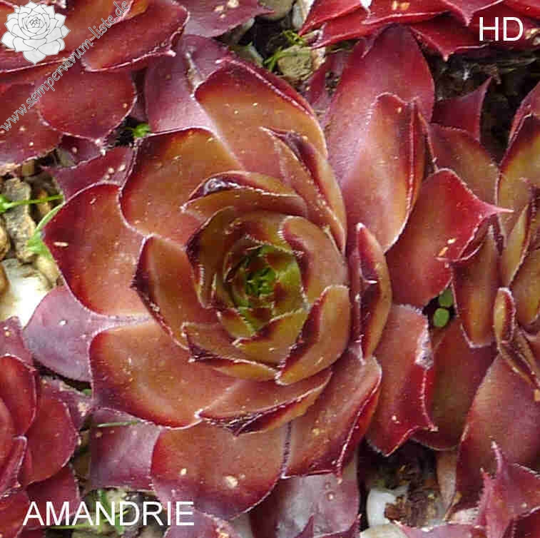 Rosetten bis 6 cm, Blätter oval, kurz bespitzt, lachsrot ,Spitzen dunkles Rot
