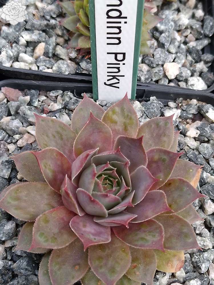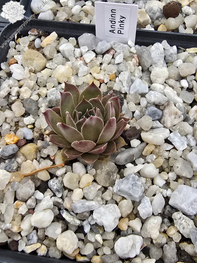 'Andinn Pinky' - feines Rosa, das seit dem Frühling gehalten wird. Feiner Hinweis auf dunklere Spitzen des Blattes, Pflanze 7 cm.Ein spürbarer Streifen.