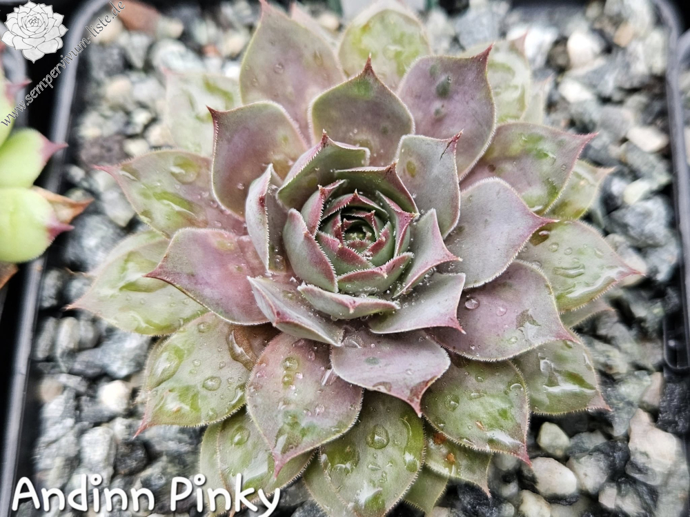 'Andinn Pinky' - jemná růžová, kterou drží od jara. Jemný náznak tmavších špiček listu, rostlina 7cm. Znatelné pruhování.
