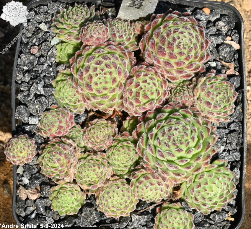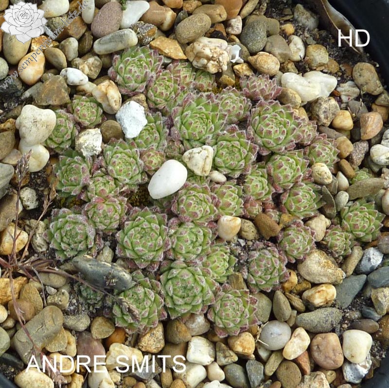 Dieser Hauswurz wurde nach meinen Sempervivum-Freund und Züchter André Smits aus Belgien benannt. Er besitzt die größte Sempervivum-Sammlung und stellt seit etlichen Jahren mit seinen Züchtungen eine große Bereicherung unter den Sempervivum-Freunden dar.