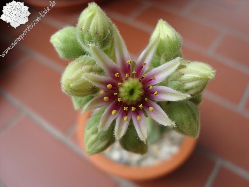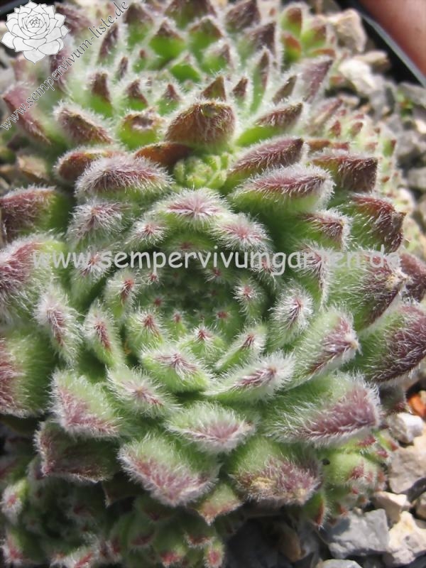 Diese niedliche Hybride wurde im Jahre 2009 zu Ehren des größten Züchters aus Belgien benannt. Im Frühjahr tragen die kleineren bis mittelgroßen Rosetten ein samtenes Kleid mit unzähligen weißen Härchen. Die Knospen verwandeln sich im Frühsommer nach dem Öffnen in cremegelbe Blütensterne mit rosafarbener Mitte. Eine neue Bereicherung im gesamten Sempervivumsortiment!