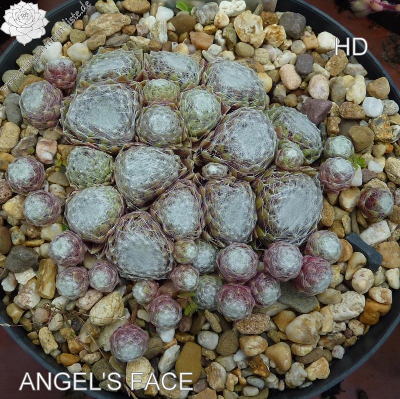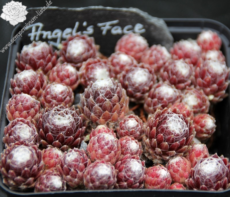 Eine neuere Züchtung , deren kräftig rote Rosetten zeigen eine weiße Bespinnung. Klein aber fein!