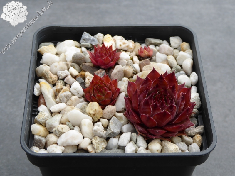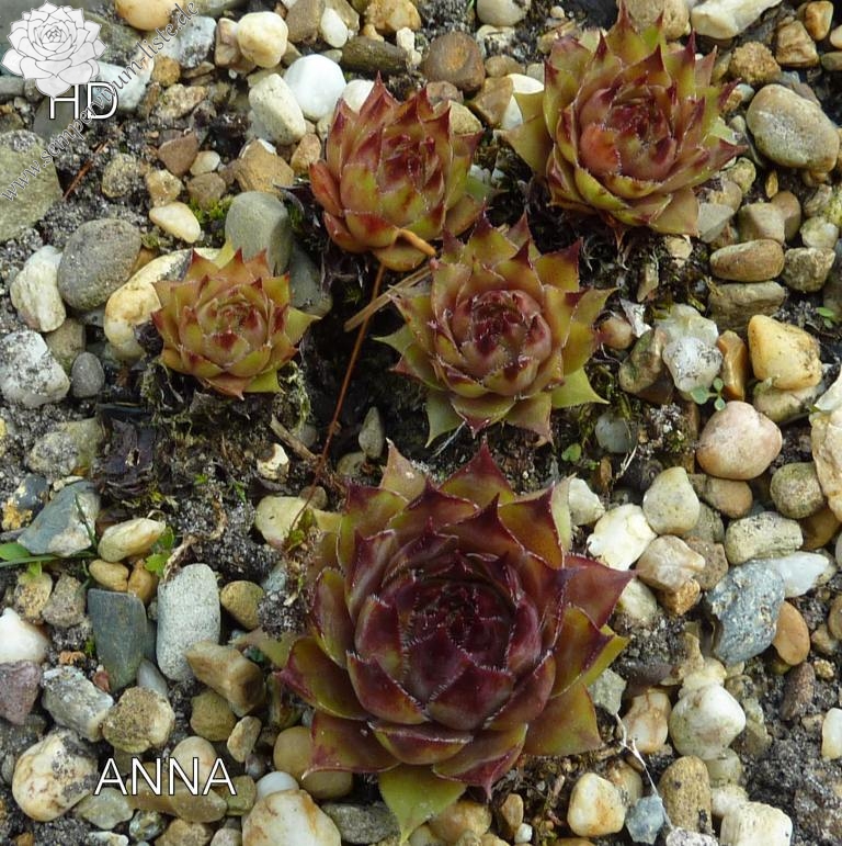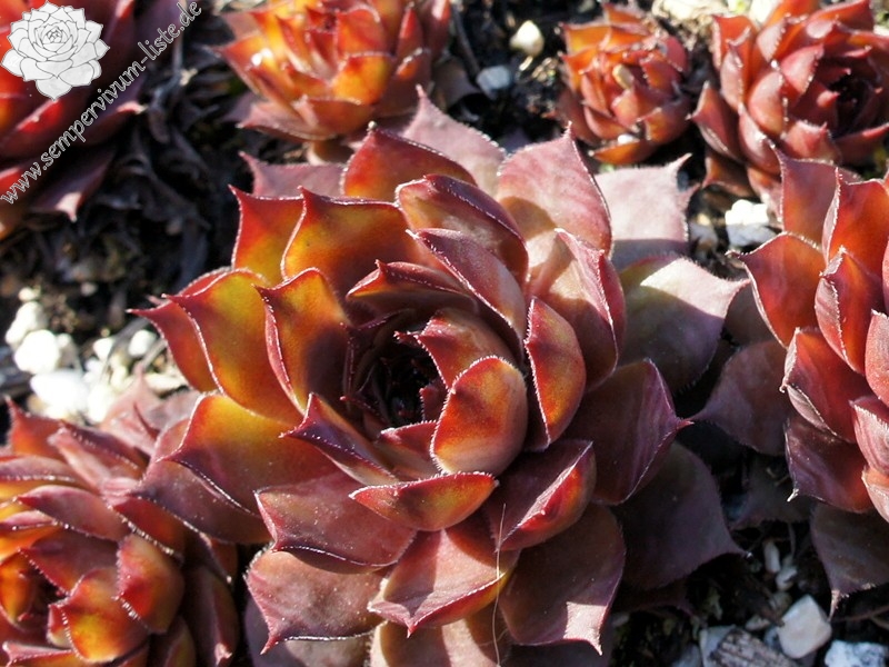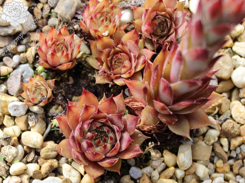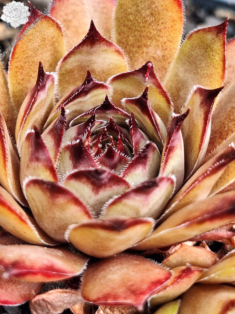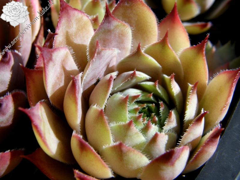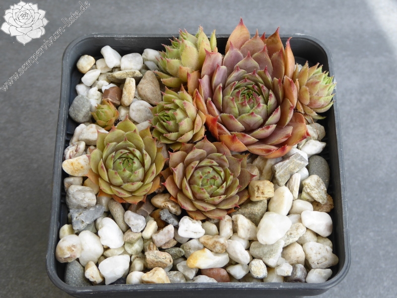 Kleine Rosetten, Blätter oval lang bespitzt, Mischfarben olivgelb - beigerot, Spitzen dunkles Braunrot