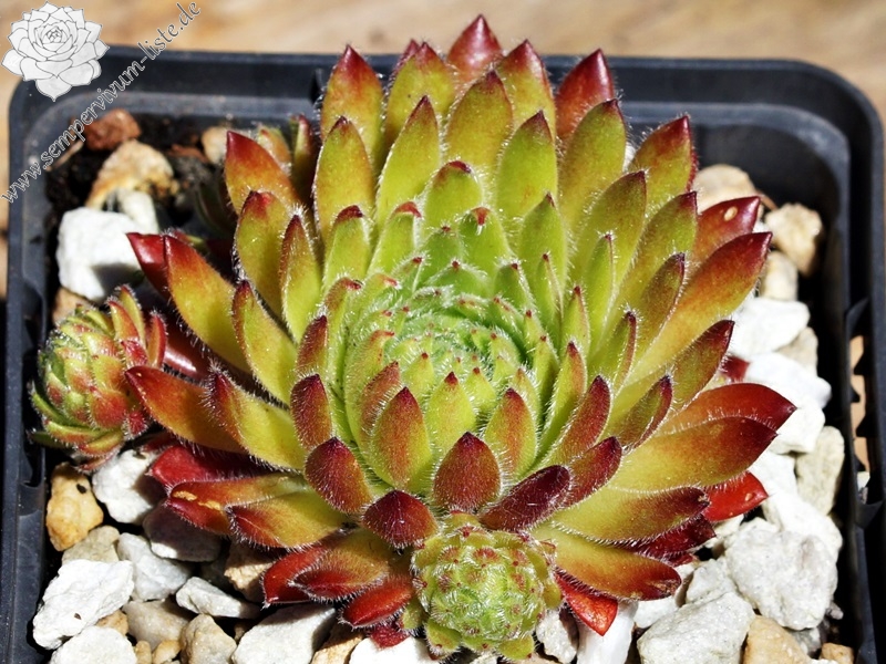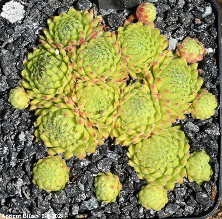 Sempervivum 'Apricot Blush' besitzt das ganze Jahr eine auffallend, zarte Farbe. Die leichte Behaarung an den Blattenden, mit den rötlichen Farben macht ein interessantes Bild. Es handelt sich um wüchsige Pflanzen.