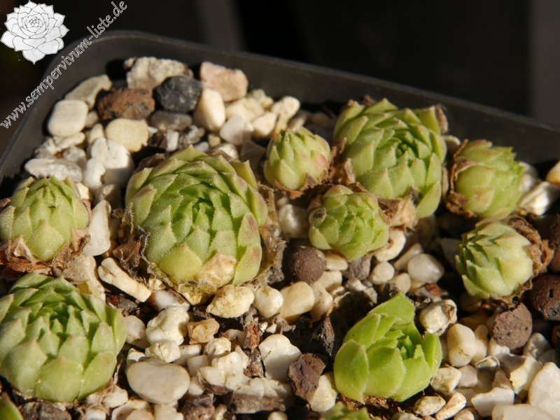 Die kugeligen, apfelgrünen Rosetten sind vom Herbst bis zum Frühling auf der Blattunterseite orange- bis pfirsichfarben angehaucht. Die Blattränder sind stark bewimpert. Früher wurde diese Art zu S. tectorum gestellt, womit Sie auch nahe verwandt ist.