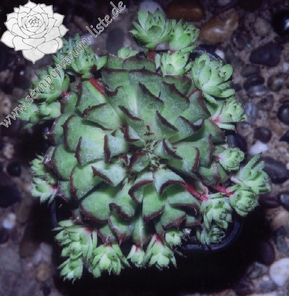 Rosetten 4 - 8 cm, gelbgrün, Blätter gedreht, im Winter rosafarben